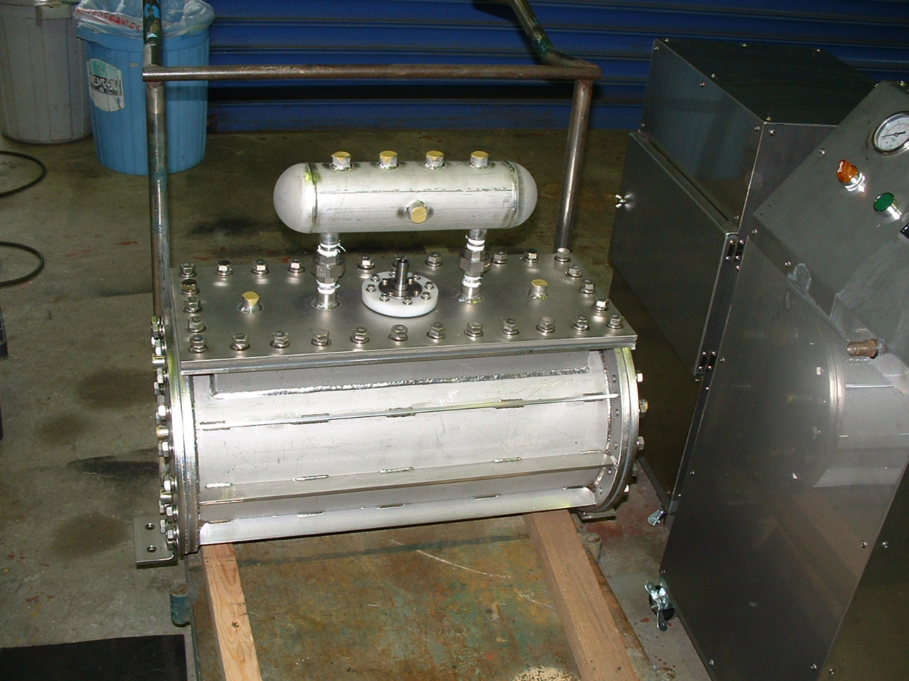 - ステンレス製(SUS316L材使用)の大型水門です。 このようにユーザー様との打合せで、いろいろなサイズの製作が可能です。